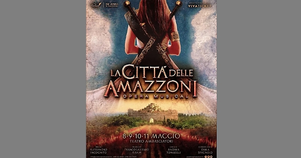 Il musical torna a Catania in grande stile, grazie ad Alessandro Incognito. Il pubblico catanese sta per assistere ad un’operazione culturale di grande spessore  che sarà di scena al Teatro Ambasciatori di  Catania dall’8 all’11 maggio. Si tratta  di “ La città delle Amazzoni”  opera musical inedita per la regia di Alessandro Incognito che vedremo pure nel ruolo di uno dei  protagonisti,  le musiche originali e arrangiamenti di Airam e Franco Lazzaro che ha curato  anche l'orchestrazione, vocalcoach e  direttrice dei Cori Lilla Costarelli, le liriche di Andrea Tomaselli, autore della sceneggiatura, le coreografie  di Erika  Spagnolo, costumi di Rosy Bellomia.