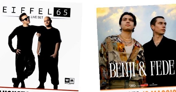 Sabato 17 maggio (ore 21,30), primo concerto di piazza con gli Eiffel 65, il frontman e cantante siracusano Jeffrey Jey (all’anagrafe Gianfranco Randone) e il musicista astigiano Maury (Maurizio Lobina).