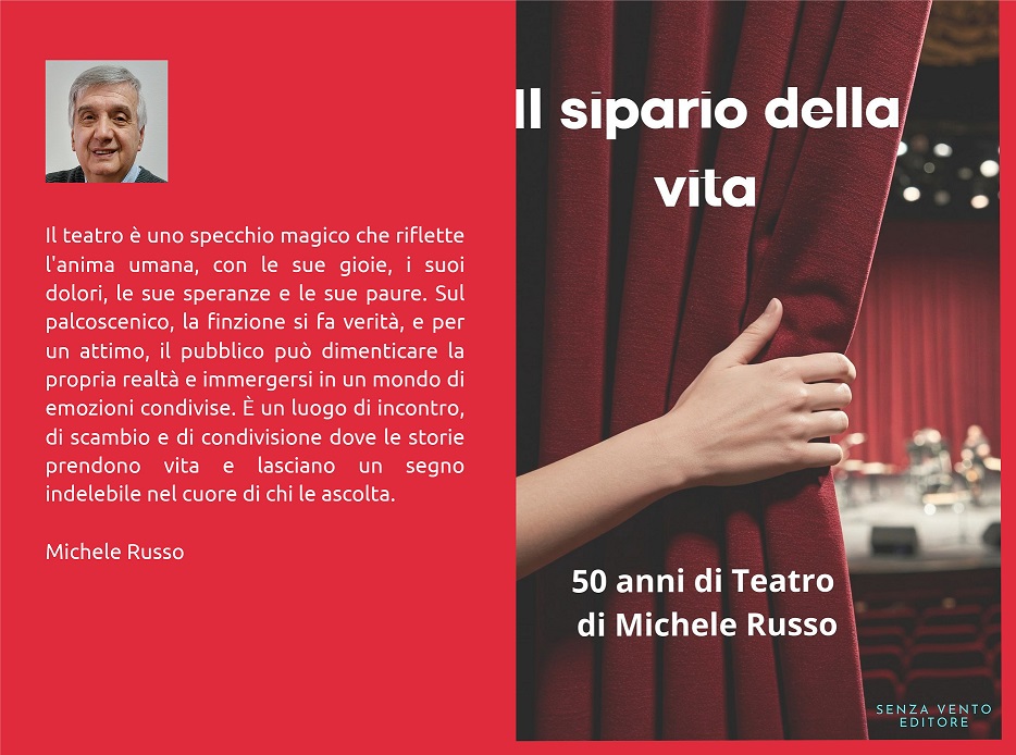 Michele Russo, figura iconica e amata del teatro siciliano, è lieto di annunciare l'uscita del suo attesissimo libro, "Il sipario della vita. 50 Anni di Teatro di Michele Russo" (che verrà presentato sabato 31 maggio alle ore 18 al Teatro di via Ravanusa, 18 a San Giovanni La Punta). Il volume ripercorre mezzo secolo di una carriera straordinaria, offrendo uno sguardo intimo e appassionato sul mondo dello spettacolo.