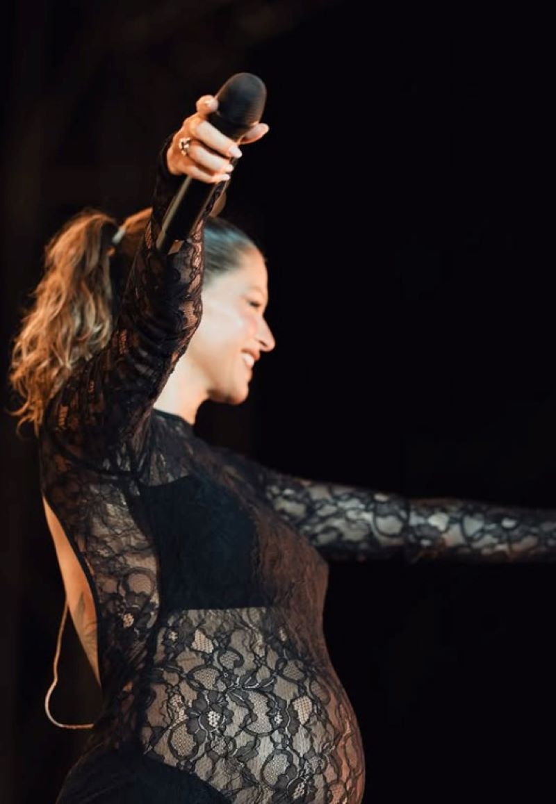 ALESSANDRA AMOROSO - Taormina Teatro Antico. Incinta al settimo mese della prima figlia, Penelope, a 39 anni la cantante sprizza felicità ed energia e sarà in tour fino a un mese prima della nascita della piccola, prevista il 9 settembre. Il papà è Valerio Pastore, sound engineer che la affianca anche dietro le quinte. Un tour di famiglia. L'artista è ritornata sulla scena musicale con il Sanremo 2024 dove ha presentato il brano "Fino a qui", il nuovo album è uscito a giugno  "Io non sarei".