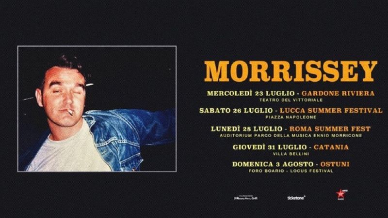 MORRISSEY - Catania Villa Bellini. Il frontman degli Smiths, il gruppo anni 80 nato a Manchester che con soli quattro album ha cambiato la musica britannica, fa tappa a Catania. Nella Gran Bretagna dove il punk si è esaurito, gli Smiths scrivono ballate orecchiabili, testi romantici e malinconici su melodie intense, qualche volta ironiche, influenzando tutto il brit-pop degli anni 90. Dopo lo scioglimento del gruppo, Morrissey ha iniziato una carriera da solista.