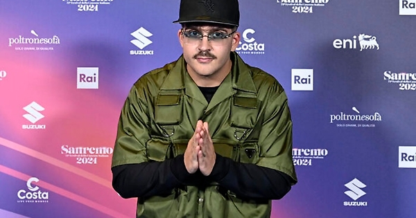 Italian singer Geolier poses during a photocall at the 74th Sanremo Italian Song Festival, Sanremo, Italy, 08 February 2024. The festival runs from 06 to 10 February 2024. ANSA/RICCARDO ANTIMIANI