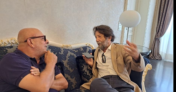 Nella frescura delle spesse mura di Palazzo Favacchio - Patanè a Scicli il filosofo Massino Cacciari riannoda i pensieri. Sotto le volte affrescate di questa dimora ottocentesca Cacciari, nella sua fugace sosta siciliana, si apre al dialogo alla sua maniera: diretto, senza infingimenti sulle cose dette che fa emergere una personalità schiva ai compromessi.