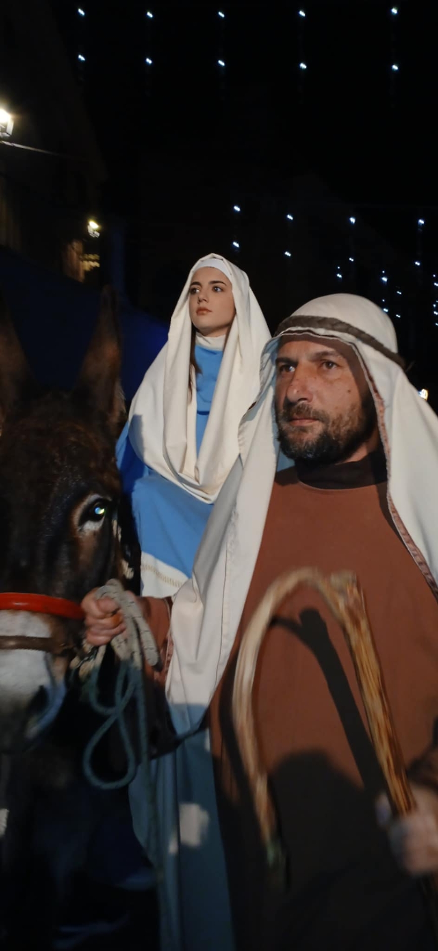 Un corteo suggestivo, guidato da San Giuseppe, la Madonna e l'asinello, seguito da pastori e popolani in abito d'epoca, è partito da piazza San Giovanni per approdare in piazza Sant'Antonio, dove la scena della Natività, allestita con cura e nel solco della tradizione, ha raggiunto il suo momento più emozionante.