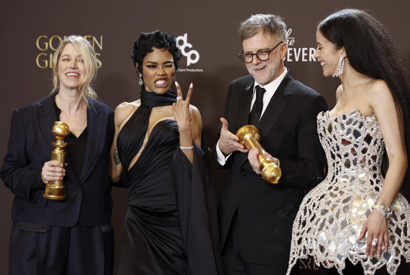 Premiati Chalamet, il brasiliano Moura e l'attrice Jessie Buckley. "Adolescence" migliore serie. Star con le spillette "Be Good": messaggio a Trump