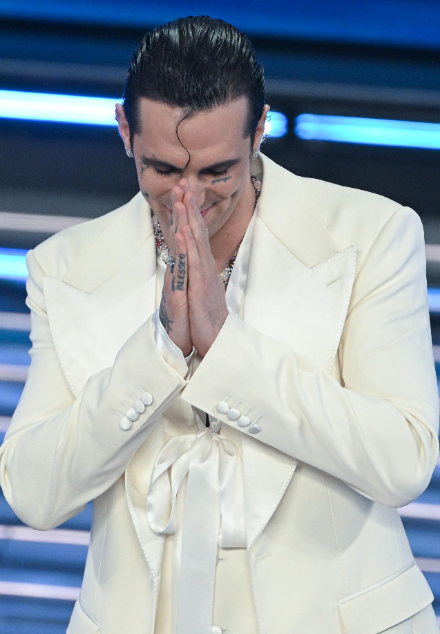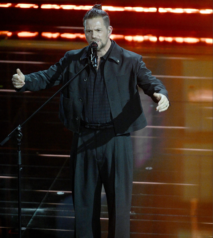 21,28 Achille Lauro fa il suo ingresso per affiancare Carlo Conti e Laura Pausini