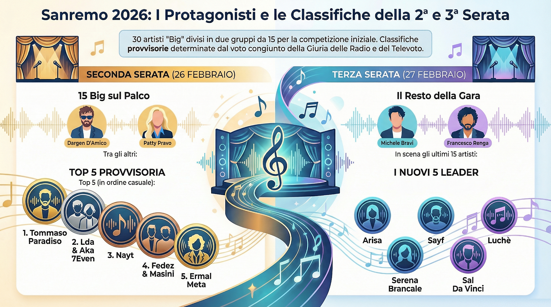 Il 27 febbraio ha segnato un momento cruciale per il Festival di Sanremo 2026, culminato con i risultati della terza attesissima serata in cui si sono esibiti i restanti 15 Big in gara.