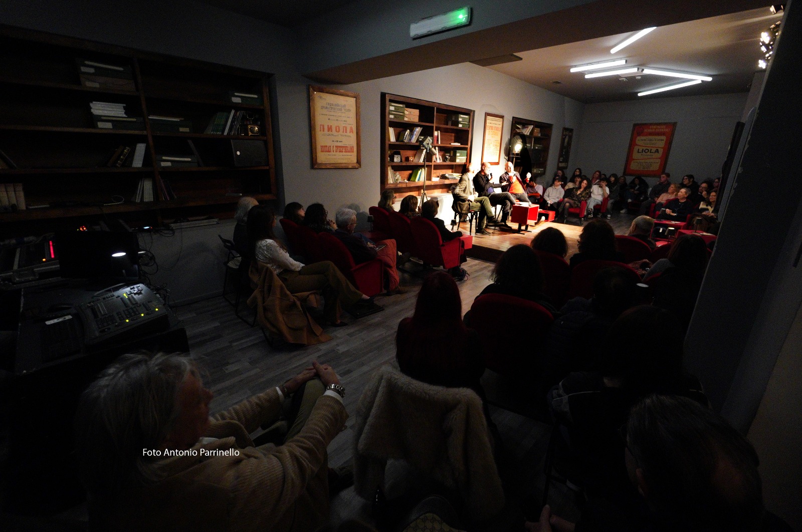Il dialogo tra lo scrittore e l'attore nello spazio del Ridotto del Teatro Verga, all’interno dello Stabile di Catania