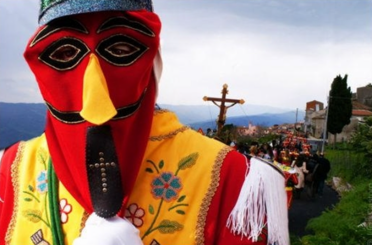 Le strade del paese diventano teatro di una rappresentazione che arriva dal Medioevo. Due diavoli mascherati e vestiti di rosso e la morte — in costume giallo ocra con maschera a teschio — girano per le strade fin dalla mattina, facendo scherzi e trattenendo i passanti. Nel pomeriggio, con U Ballo di Diavuli, cercano di impedire l'incontro tra le statue di Cristo e della Madonna, finché non intervengono gli angeli a scortare le statue.