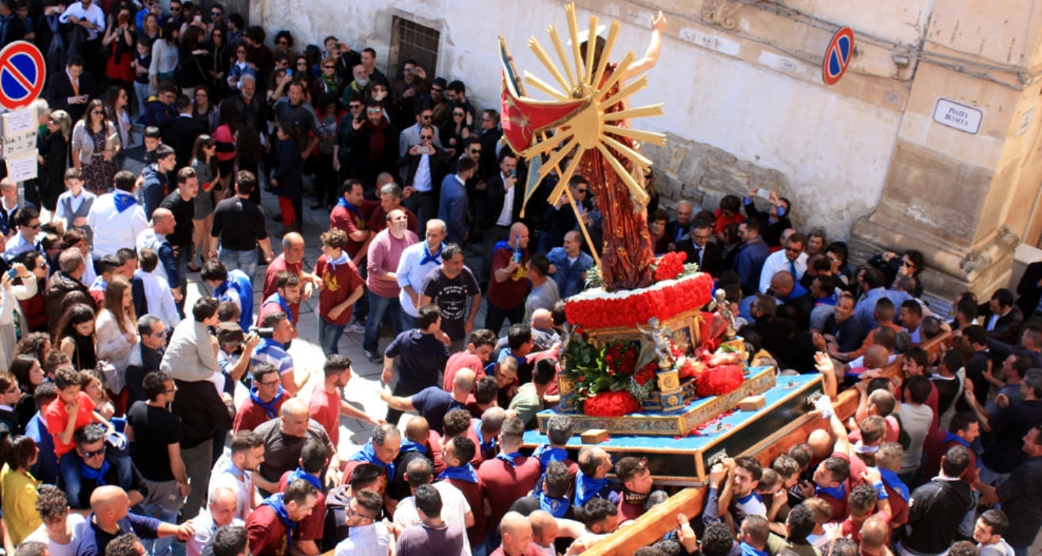 Una delle celebrazioni pasquali più travolgenti della Sicilia, cui Vinicio Capossela ha dedicato una canzone dopo avervi partecipato di persona. La domenica di Pasqua in chiesa tutti urlano "Gioia, gioia, gioia!", la statua esce portata da mille braccia e inizia la sua danza nel quartiere di Santa Maria La Nova. Ondeggia, si ferma, riparte, sembra che stia per cadere. Una corsa instancabile per le vie della cittadina, mentre dai balconi si lanciano petali di fiori.
