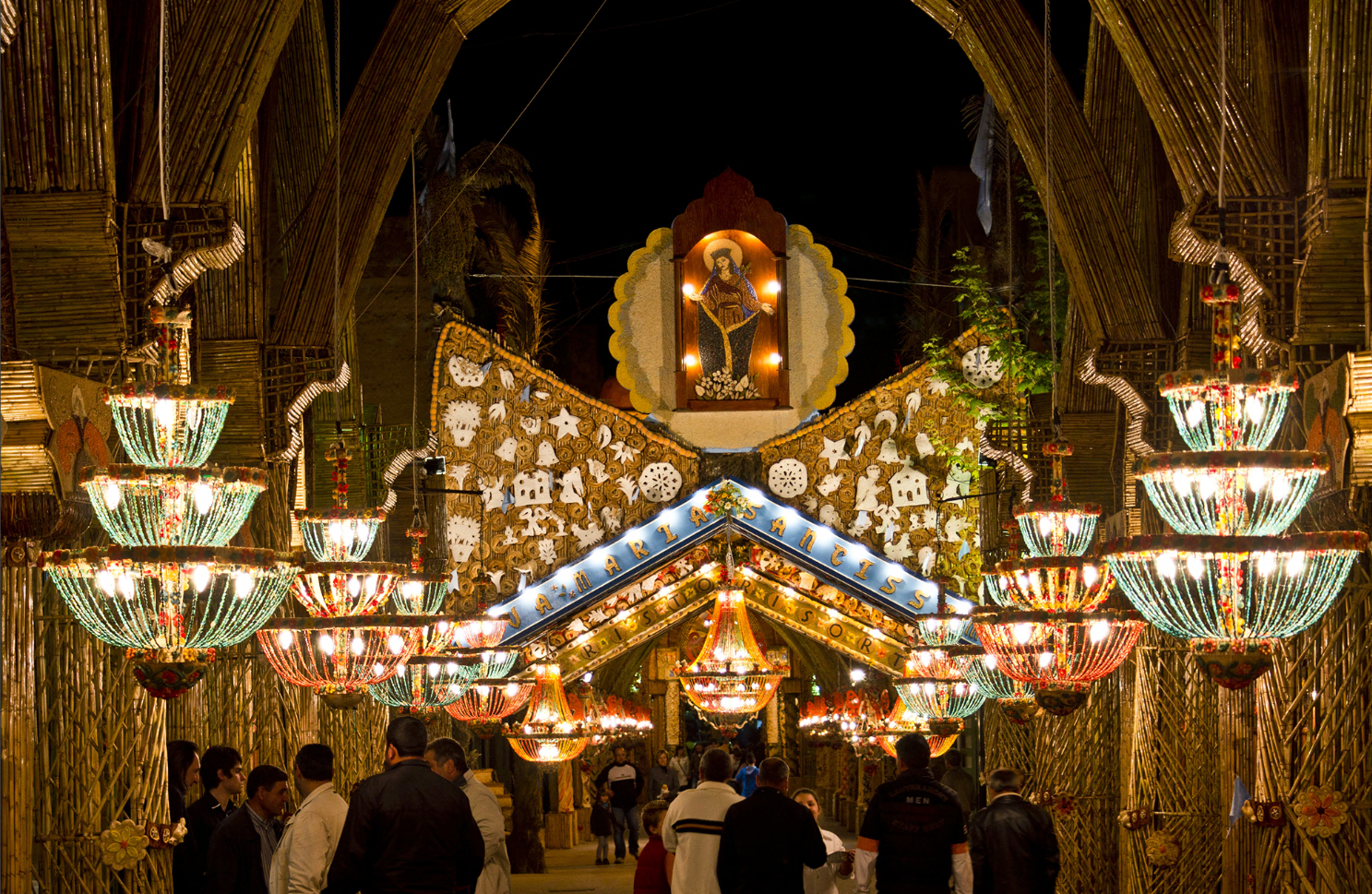 A San Biagio Platani, in provincia di Agrigento, gli Archi di Pasqua sono il frutto di una straordinaria competizione artigianale: per settimane le confraternite costruiscono archi, cupole e campanili su strutture di canne, decorandoli con pane, agrumi e alloro lungo il corso principale.