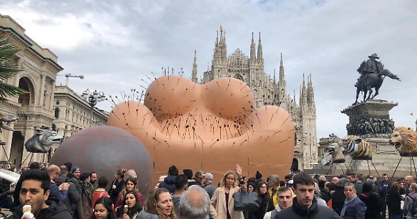 MILANO, 7 APR - È stata inaugurata in piazza Duomo a Milano l'installazione 'Maestà sofferente' di Gaetano Pesce, un'enorme poltrona a forma di corpo di donna, trafitta da frecce, attaccata da teste di belve e legata con una catena a una grossa palla, per simboleggiare la violenza contro le donne. L'opera, un omaggio alla poltrona Up5&6 che Pesce ideò 50 anni fa, da quando è stata posizionata in piazza Duomo ha scatenato polemiche. "L'arte fa discutere e fa crescere il nostro cervello - ha detto Gaetano Pesce all'inaugurazione -. Secondo me questa opera è una festa, anche se triste perché si ricorda che le donne sono vittime di violenza, ma è meglio ricordarlo che negarlo. E' un'occasione per discutere della violenza sulle donne e direi che ci siamo riusciti. Oggi è il tempo delle donne, anche in politica". "L'opera da ieri fa discutere e si è aperto un dibattito, ma questo già è un primo dato positivo", ha commentato l'assessore alla Moda e Design del Comune di Milano, Cristina Tajani.