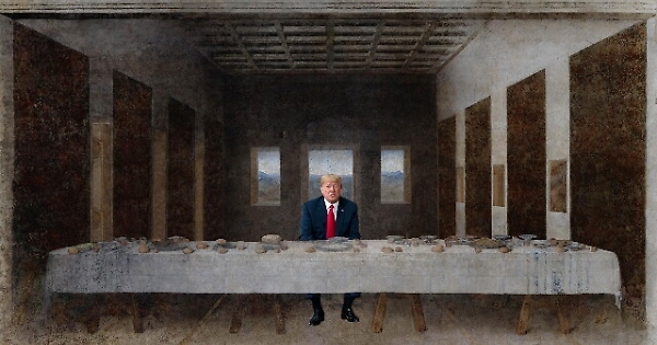 PALERMO, 24 GEN - Eccoli quei due leader che il 12 giugno 2018 firmarono uno storico incontro, da cui dipendono le sorti del pianeta, ritratti in modo irriguardoso: Donald Trump al centro di una tavola vuota da Ultima cena di Leonardo e di fronte a lui Kim Jong-un che emerge come la Venere di Botticelli con ai lati giocatori di basket. Sono solo due delle 19 enormi stampe a colori di Max Papeschi nella mostra "Pyongyang Rhapsody, The Summit of Love", allestita al padiglione Zac dei Cantieri culturali alla Zisa che si inaugura il 24 gennaio e proseguirà da oggi fino al 24 marzo. Insieme alle stampe, c'è la Pop art di Max Ferrigno (originario di Casale Monferrato) che espone: 70 bandiere e due grandi tele. "Un carosello d'immagini mostruosamente iconiche e farsesche. - affermano i promotori - Al rimpallo delle immagini dei due leader fanno da contraltare le bandiere della Nord Corea, rivisitate da Ferrigno, nelle quali il simbolo del paese asiatico è tradotto in chiave pop-erotica".