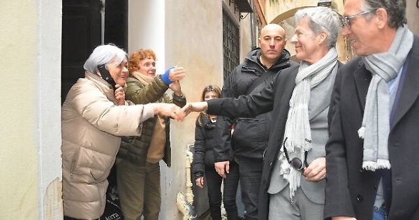 SANREMO (IMPERIA), 30 GEN - Un duetto con il cantante sanremese Amedeo Grisi malato di Sla e una passeggiata nel centro storico di Sanremo, la 'Pigna', circondato dai fan che gli hanno affettuosamente imposto autografi e selfie. "Oggi è il mio primo giorno d'aria, come i carcerati. Sono sempre chiuso all'Ariston", dice il direttore artistico del 68^/mo Festival di Sanremo Claudio Baglioni. Accompagnato dal sindaco Biancheri, Baglioni ha raggiunto l'oratorio di Santa Brigida, nella città alta, dove ad attenderlo c'era Grisi. A quel punto è iniziato il concerto e Grisi lo ha aperto con 'Avrai'. Baglioni ha accompagnato Grisi in altri due brani di Lucio Battisti, con voce e chitarra. Soddisfatto il sindaco che ha raggiunto l'obiettivo principale: portare il Festival in città. Baglioni ha camminato una ventina di minuti per i carruggi. "Oggi stiamo compiendo una prova di idoneità - ha detto Baglioni - avendo percorso un migliaio di scalini su e giù per i carruggi mi mettono alla prova, per vedere se la forma regge".
