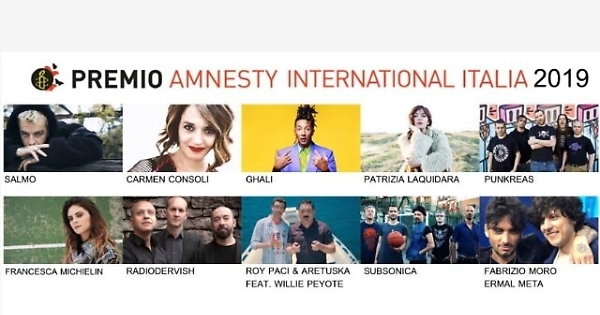 ROMA, 26 FEB - Carmen Consoli con "Uomini topo", Francesca Michielin con "Bolivia", Ghali con "Cara Italia", Patrizia Laquidara con "Il cigno (The Great Woman)", Ermal Meta e Fabrizio Moro con "Non mi avete fatto niente", Roy Paci & Aretuska feat. Willie Peyote con "Salvagente", i Punkreas con "U-soli", i Radiodervish con "Nuovi schiavi", Salmo con "90 min", i Subsonica con "Punto critico". Sono questi i dieci brani in lizza per il Premio Amnesty International Italia, sezione Big, lo storico riconoscimento riservato a brani pubblicati da artisti italiani affermati nell'anno precedente che tocchino tematiche sui diritti umani. Il riconoscimento, nato nel 2003 nell'ambito del festival 'Voci per la Libertà - Una canzone per Amnesty', viene assegnato da una giuria di giornalisti, conduttori radiofonici e televisivi, studiosi, rappresentanti di festival, referenti di Amnesty e di Voci per la Libertà.