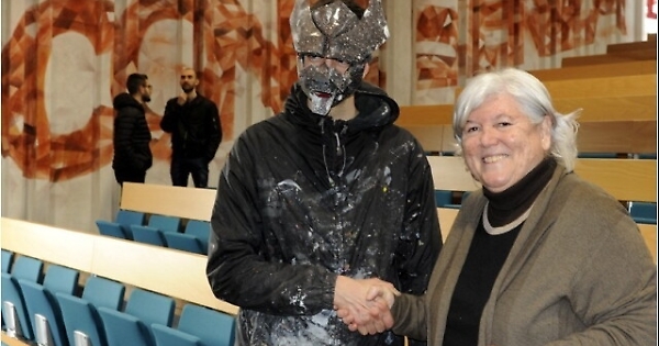 CAGLIARI, 9 MAR - Due mesi di lavoro e ora l'aula magna del corpo aggiunto dell'Università di Cagliari ha due scritte sulle pareri in perfetto stile street art: Apprendimento e Conoscenza. È l'ultimo lavoro di Manu Invisible, artista sardo molto conosciuto anche nel resto d'Italia per il suo mistero: indossa sempre una maschera e non svela la sua identità. "Un'opera che arricchisce l'ateneo che abbina la cultura alla bellezza e all'arte", ha detto la rettrice Maria Del Zompo di fronte a centinaia di studenti arrivata in facoltà per ammirare il lavoro, il primo di un artista street art ad essere ospitato in una sede universitaria. I collaboratori di Manu Invisible - tra loro anche gli stessi studenti - hanno mostrato in un video i momenti salienti della lavorazione. Le parole in aula magna sono realizzate con la tecnica dell'affresco e la pittura spray. E sono composte con specifiche trame che nel colore nella forma rimandano a pietre preziose: il diamante per l'apprendimento e il rubino per la conoscenza.