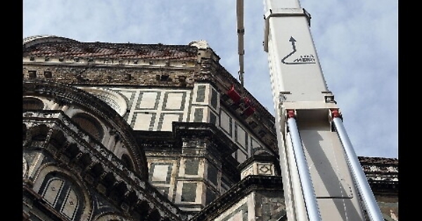FIRENZE, 9 MAG - Hanno preso il via a Firenze le operazioni di monitoraggio dei marmi esterni del Duomo, del Campanile di Giotto, della Cupola del Brunelleschi e del Battistero, e nel corso dell'intervento è stato avvistato un nido con tre pulli di falco pellegrino, 'residenti' in una delle fessure del Campanile di Giotto, e 'guardati a vista' dalla madre in volo concentrico intorno alla torre. Da molti anni abitante delle parti più alte del complesso del Duomo, la famiglia di falchi viene solitamente scorta proprio nel momento della supervisione delle superfici. Partiti il 9 maggio, i lavori andranno avanti tre settimane: gli interventi sono eseguiti dal personale dell'Opera di Santa Maria del Fiore con un'autogru dotata di un braccio di 103 metri. L'operazione, dal 2015, viene regolarmente svolta ogni sei mesi (in precedenza era annuale) e riguarda tutti i 40 mila metri quadrati di superfici marmoree dell'interno complesso. Ad eseguire i lavori, il gruppo di restauratori della Bottega di restauro dell'Opera.