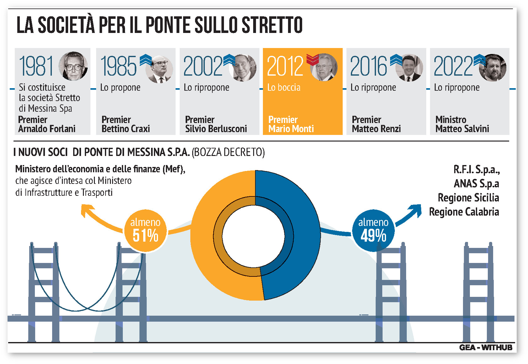 Il decreto resuscita anche i vecchi contratti di appalto cancellati dal governo Monti, a partire da quello con Eurolink, il consorzio guidato da Salini (oggi Webuild) che vinse la gara internazionale d'appalto.