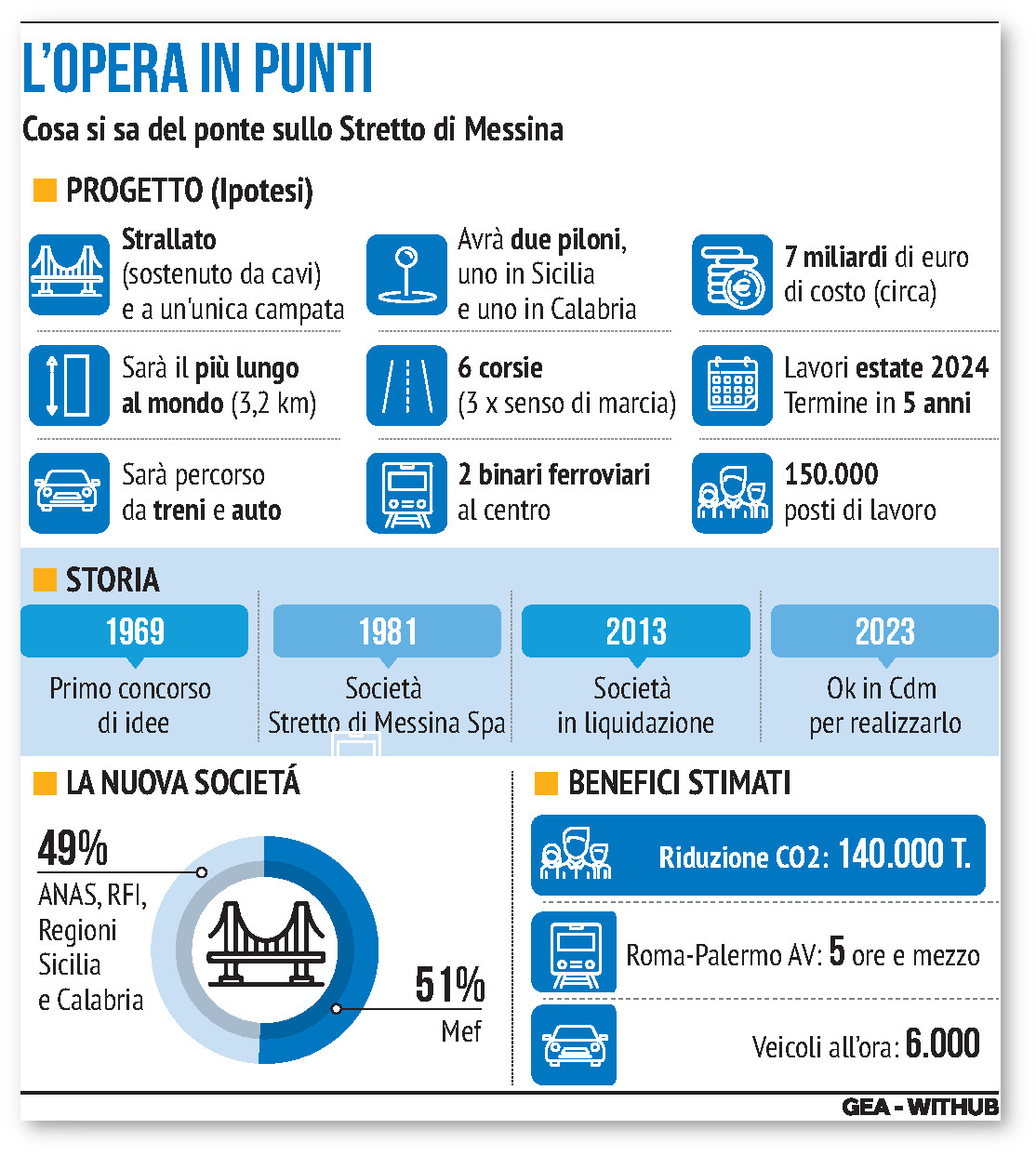 Ponte sullo Stretto: entro luglio 2024 l'ok definitivo al progetto, poi i cantieri
