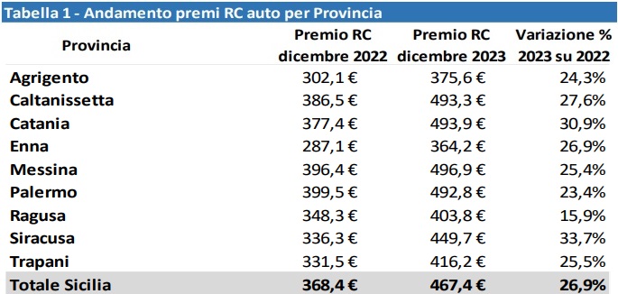 Approfondendo l’andamento dei premi delle RC auto per le Province più abitate notiamo che gli aumenti più marcati si registrano a Milano (+32,9%), Brescia (+31,7%), Catania (+30,9%), Bergamo (+30,4%), Roma (+29,9%) e Torino (+28,2%); Bari e Palermo, invece, registrano rincari in linea con la media nazionale, rispettivamente del 25% e del 23,4%; più “fortunate” le due Province campane, Napoli e Salerno, dove gli aumenti sono stati più contenuti, al 13,9% e all’11,7%.