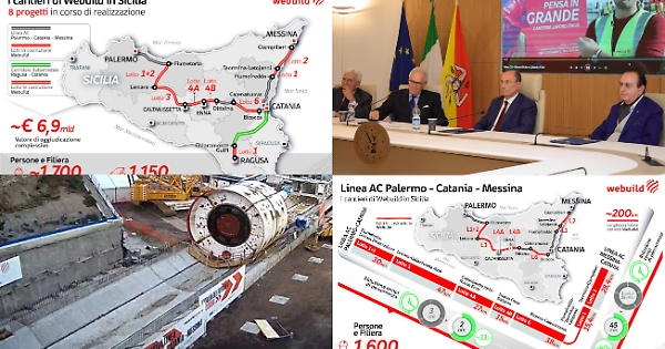 «Spesso sento dire: prima di fare il ponte sullo Stretto perché non si fa altro? Questo altro in Sicilia si sta facendo, non c'è altra regione in Italia con un volume di investimenti così gigantesco per le infrastrutture, solo noi stiamo gestendo 8 miliardi di euro», ha sottolineato dal canto suo l'amministratore delegato di Webuild, Pietro Salini. «Il gruppo è all’opera su gran parte dei progetti in corso, dai lotti della direttrice ad alta capacità Palermo-Catania-Messina all’autostrada Ragusa-Catania, e ci siamo attivati con programmi di formazione per assumere i tecnici di cui abbiamo bisogno in questa regione, come quelli che saranno in grado di guidare le grandi TBM che scavano le gallerie, grazie ai simulatori appositamente costruiti per il nostro centro di addestramento vicino Catania. Oltre alle iniziative di formazione, portiamo innovazione nella regione attraverso la fabbrica automatizzata per la costruzione dei conci per le gallerie siciliane a Belpasso, e con quella di Enna in prossima apertura. Vogliamo che la Sicilia sia territorio non solo di lavoro ma di lavoro di qualità ed innovazione per trattenere qui i talenti che questa regione esprime».