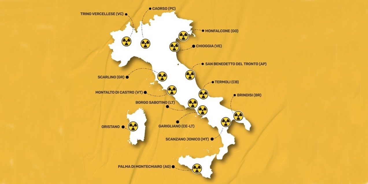 Un paio di anni fa invece il ministero dell’Ambiente e della sicurezza energetica ha pubblicato la mappa delle aree idonee per il deposito nazionale delle scorie nucleari, la Cnai (Carta nazionale delle aree idonee). Sono indicati 51 siti, concentrati in 5 zone su 6 regioni: 10 in Basilicata (5 nel Materano e 5 nel Potentino), 4 fra Basilicata e Puglia, 21 in Lazio (nel Viterbese), 5 in Piemonte (nell’Alessandrino), 1 in Puglia (a Gravina), 8 in Sardegna (2 nell’Oristanese e 6 nel Sud Sardegna), 2 in Sicilia ( TP-9 Trapani Calatafimi-Segesta TP-11 Trapani).