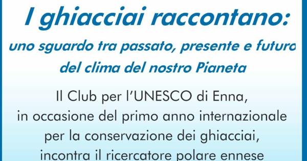 Enna ospita il convegno “I ghiacciai raccontano: uno sguardo tra passato, presente e futuro del clima del nostro Pianeta” con il ricercatore polare Federico Scoto. Il Club per l’Unesco di Enna promuove un incontro in occasione dell’Anno Internazionale della Preservazione dei Ghiacciai.