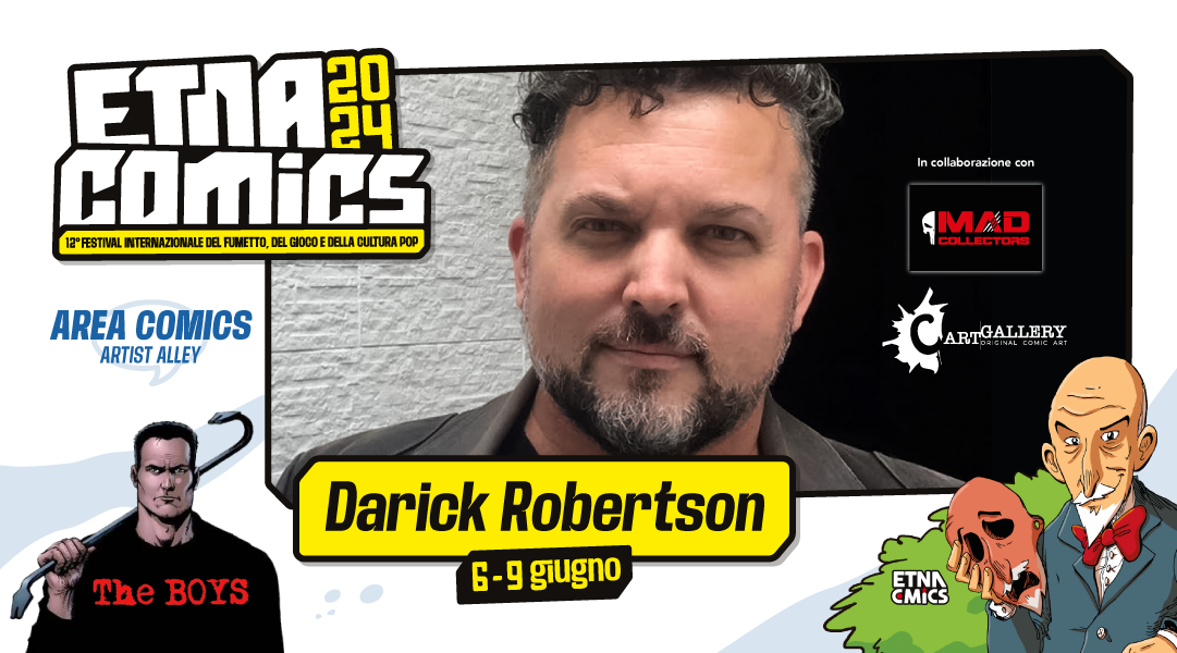 È l'identikit di Darick W. Robertson, l'artista statunitense che da oltre trentacinque anni infiamma i propri fan, brillando ormai da tempo tra le stelle del panorama internazionale. Dal 6 al 9 giugno sarà a Catania, grazie alla collaborazione dei Mad Collectors e di CArt Gallery, e sarà possibile incontrarlo in Artist Alley al centro fieristico “Le Ciminiere”, durante la dodicesima edizione di Etna Comics.
