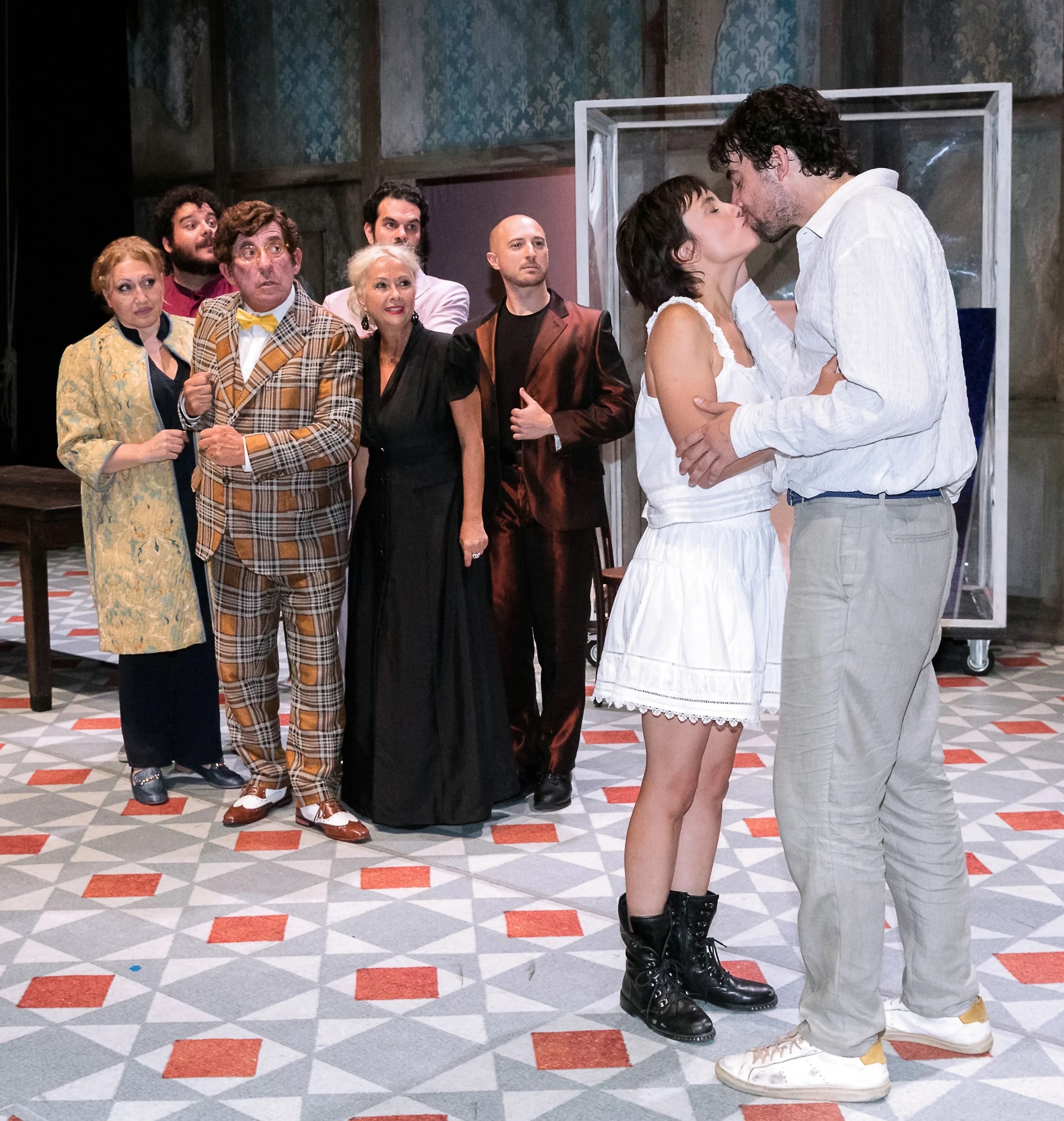 Avvincente il plot: due giovani innamorati (Eugenia e Fulgenzio) ci mostrano come un amore dolce, limpido e senza inganni si possa trasformare senza alcun motivo in folle gelosia: da qui nascono una serie di ripicche, furibonde liti, alternate a dolci riappacificazioni e languidi desideri. Il tema universale e contemporaneo continua a decretare il successo di quest’opera teatrale. Goldoni arricchisce la vicenda dei due giovani innamorati inserendo una magnifica galleria di personaggi che ingarbugliano la narrazione con intrusioni continue e consigli non richiesti. Il campione assoluto nel creare scompiglio e nel creare strade drammaturgiche aggrovigliate, è Fabrizio (lo zio di Eugenia), magnifica maschera di chiacchierone, bonario bugiardo che esalta e magnifica tutti coloro che lo circondano determinando ilarità dentro e fuori la scena. “Con una scenografia contemporanea e costumi moderni, nasce uno spettacolo asciutto, diretto, senza fronzoli, che mescola leggerezza, risate, momenti di grande commedia a cupe atmosfere per poter rappresentar un amore più violento di tutti gli altri; uno spettacolo in cui trionfa il Teatro e la magnifica macchina teatrale inventata dal più grande drammaturgo italiano, capace con un testo scritto nel 1759, di parlare ancora oggi alle persone sedute in platea”, dichiara Roberto Valerio. Animeranno le scene, interpreti e personaggi (nelle foto di Filippo Venturi), con Claudio Casadio (Fabrizio): Loredana Giordano (Flamminia, nipote di Fabrizio, vedova); Valentina Carli (Eugenia, nipote di Fabrizio); Leone Tarchiani (Fulgenzio, amante di Eugenia); Maria Lauria (Lisetta, cameriera); Lorenzo Carpinelli (Roberto, gentiluomo); Damiano Spitaleri (Tognino, servitore); Alberto Gandolfo (Ridolfo, amico di Fabrizio e Clorinda, cognata di Fulgenzio).