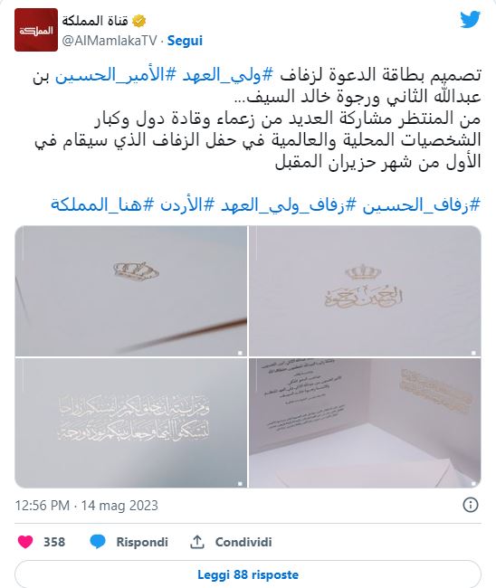 Attesa per le nozze reali tra il principe ereditario Hussein e l'architetto saudita