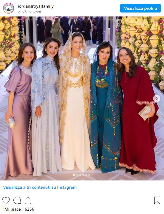 Un royal wedding che unisce modernità e tradizione con feste di giorni e inviti alle teste coronate del pianeta. Il principe Hussein ha regalato alla futura sposa uno spettacolare anello con diamante dal taglio ovale incastonato tra due pietre più piccole acquistato da Harry Winston, il re americano dei diamanti. La cerimonia nuziale sarà seguita da un ricevimento al palazzo Al Husseiniya alla presenza reali e dignitari di tutto il mondo. La regina Azizah della Malaysia, confermando a The Royal Watcher la sua partecipazione e quella del marito re alla cerimonia, ha rivelato che sull'invito al nuovo royal wedding di Giordania è stato esplicitato l'obbligo di cravatta nera e abito lungo per le signore, ma niente tiare. Forse sarà la sposa asfoggiarne una.