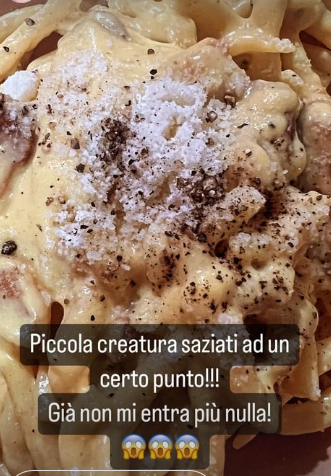 La commozione e la felicità per l'arrivo di questo bebè, di cui non si sa ancora il sesso, è infinita. Guenda Goria ci scherza anche su postando nelle sue stories di Instagram un ricco primo piatto che a quanto pare non è riuscito a soddisfare la sua fame.
