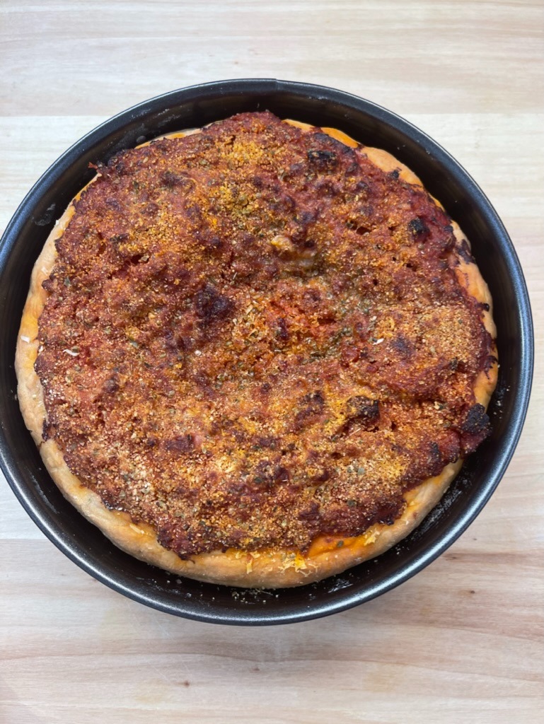 Sfornare e condire lo sfincione di San Vito nella parte superiore con altro ragù, del caciocavallo grattugiato, il pangrattato e l’origano e un giro d’olio, quindi ultimato la cottura in forno sempre a 220 gradi per 15 minuti.