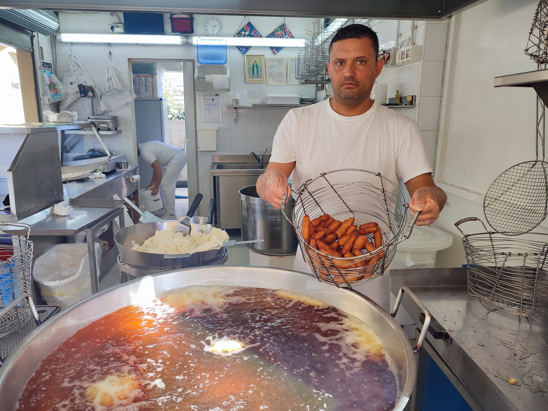 Il suo apprendistato non è stato lineare. Diplomato in ragioneria, calciatore per passione, avrebbe dovuto fare altro. Il padre, consapevole della fatica di un lavoro senza feste, aveva provato a tenerlo lontano dalla friggitoria ma il bisogno di personale e il senso di responsabilità lo riportarono dietro il banco. «Ho cambiato il corso della mia vita, ma sono fiero di avere portato avanti quello che lui ha costruito». Oggi il padre non lavora più; Giovanni guida una squadra giovane, con l’orgoglio di chi ha trasformato un mestiere in identità. Il futuro lo interroga come padre prima ancora che come artigiano. Due figli gemelli, dieci anni: «Vorrei che facessero altro. Poi decideranno loro». Negli anni sono arrivati anche dei riconoscimenti da riviste gourmet, ma più delle recensioni contano i complimenti dei clienti. «Una volta una signora mi ha detto “Grazie di esistere”, è stato il più bello che mi potessero fare».