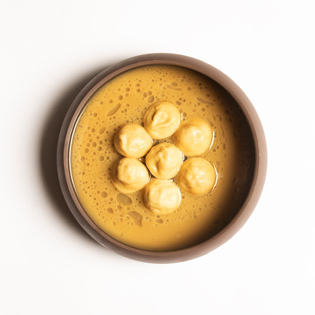 Un secondo piatto raffinato che valorizza uno degli ingredienti più iconici della cucina di carne: l’agnello. In questa preparazione la carne viene arrotolata e cotta in modo da rimanere rosata e succosa al cuore, accompagnata da un fondo ristretto che ne esalta il sapore intenso. La senape aggiunge una nota leggermente pungente, mentre la crema di topinambur, servita in quenelle, dona morbidezza e equilibrio al piatto.
