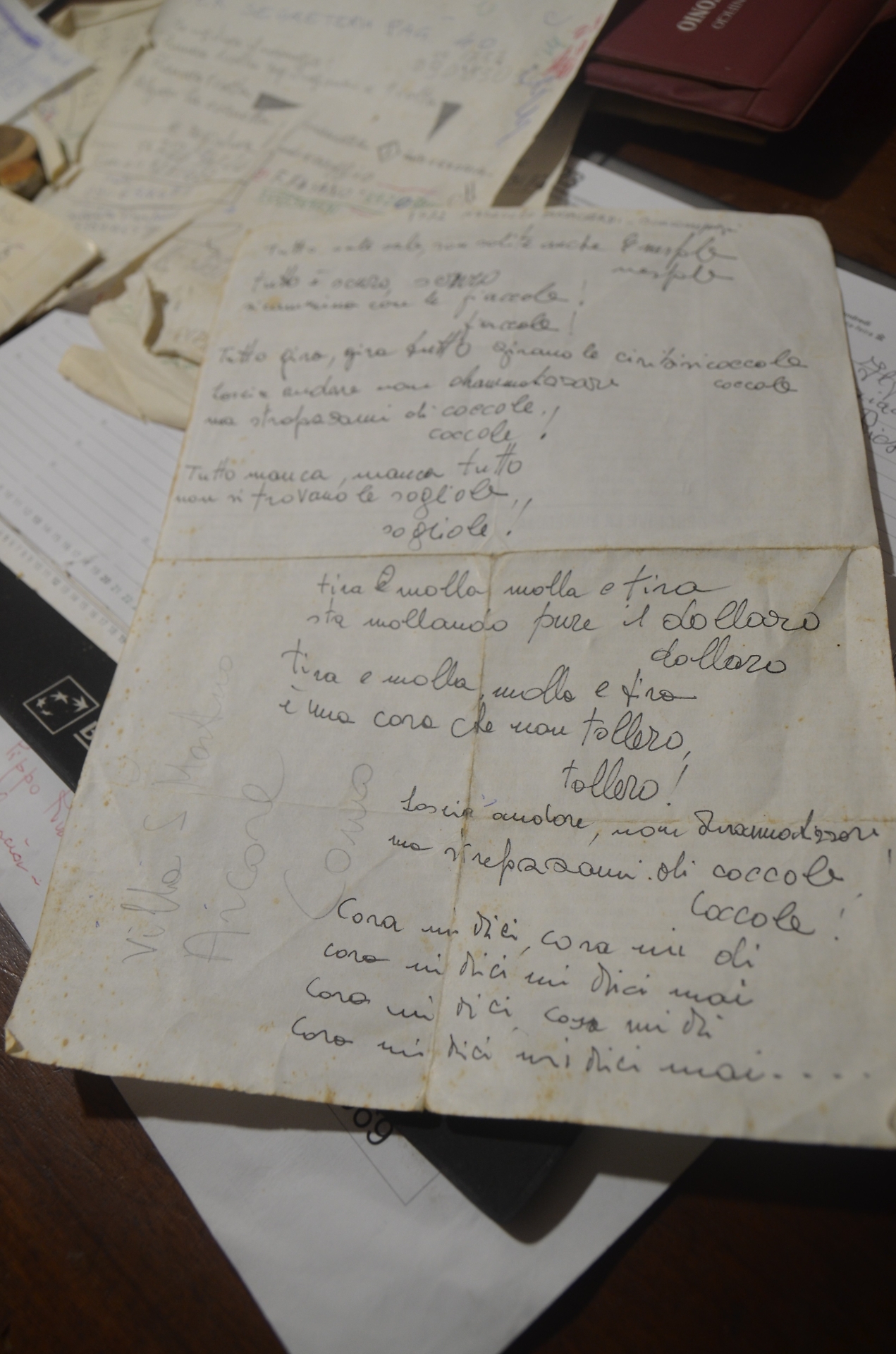 ll foglio originale con il testo di "Strapazzami di coccole"