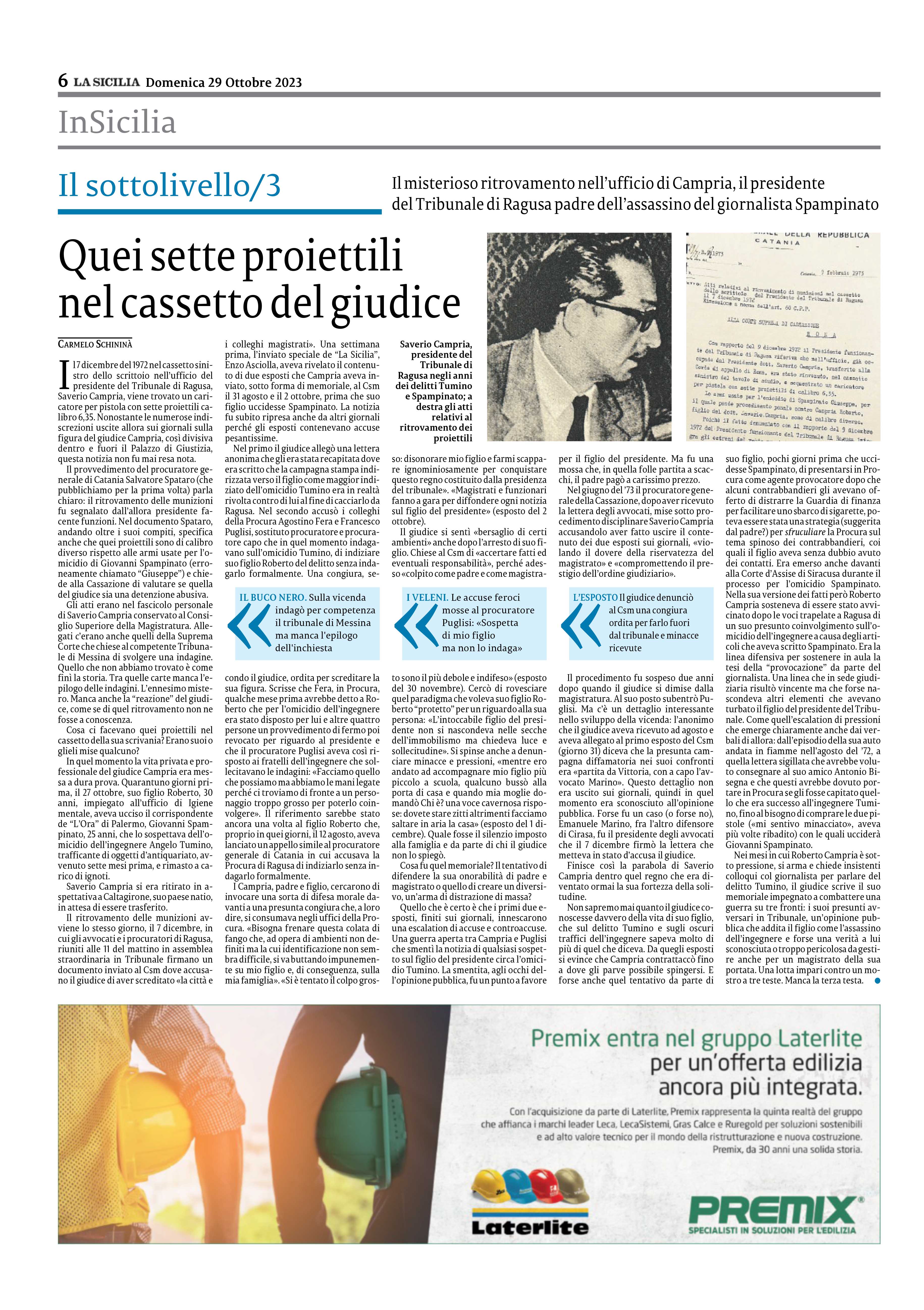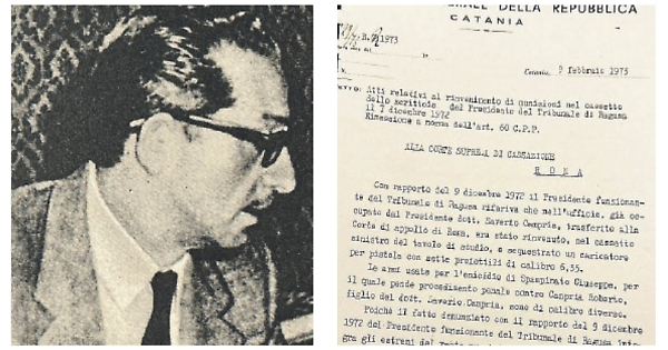 Il 7 dicembre del 1972 nel cassetto sinistro dello scrittoio nell’ufficio delpresidente del Tribunale di Ragusa, Saverio Campria, viene trovato un caricatore per pistola con sette proiettili calibro 6,35. Nonostante le numerose indiscrezioni uscite allora sui giornali sulla figura del giudice Campria, così divisiva dentro e fuori il Palazzo di Giustizia, questa notizia non fu mai resa nota.