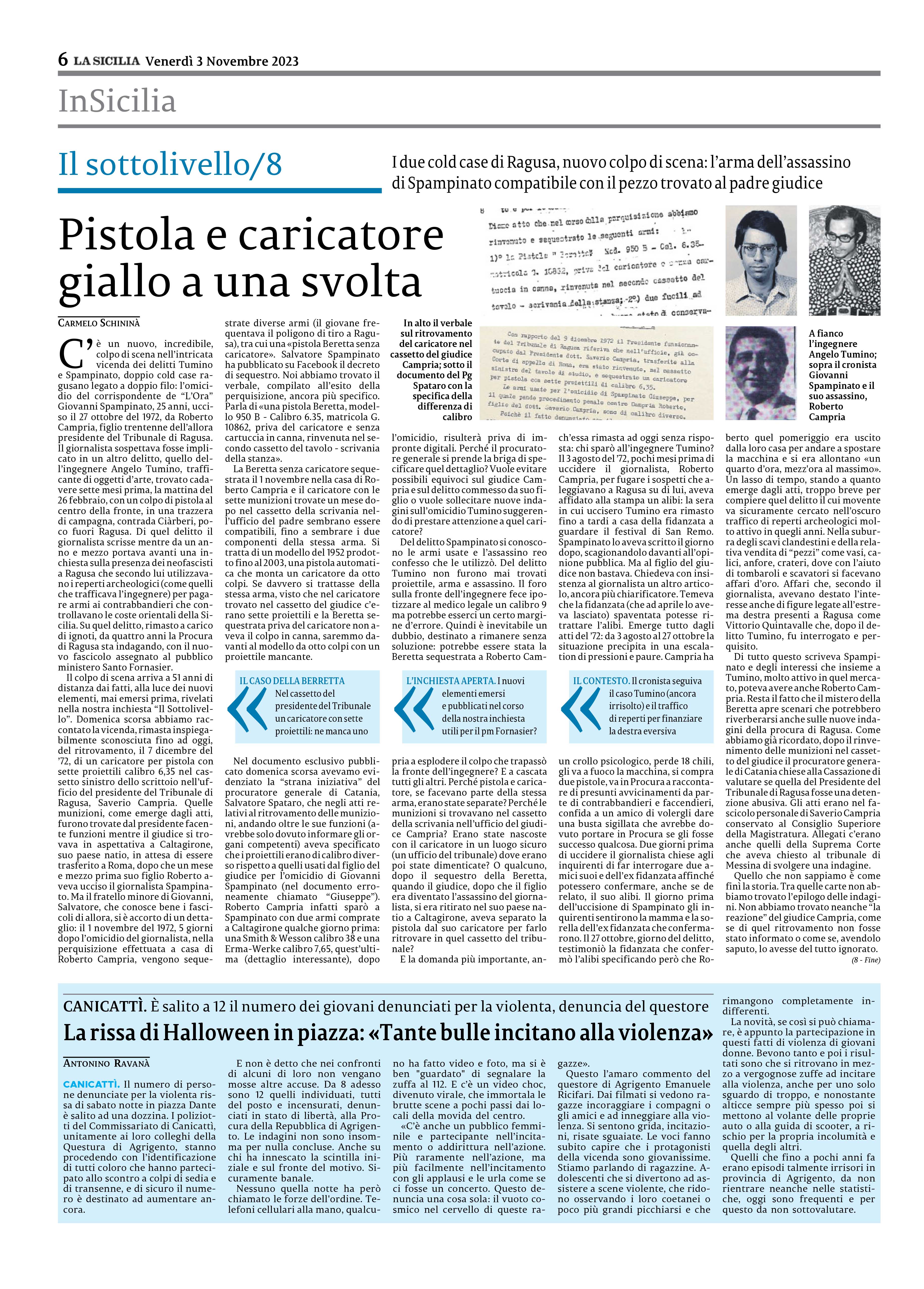 C’è un nuovo, incredibile, colpo di scena nell’intricata vicenda dei delitti Tumino e Spampinato, doppio cold case ragusano legato a doppio filo: l’omicidio del corrispondente de “L’Ora” Giovanni Spampinato, 25 anni, ucciso il 27 ottobre del 1972, da Roberto Campria, figlio trentenne dell’allora presidente del Tribunale di Ragusa. Il giornalista sospettava fosse implicato in un altro delitto, quello dell’ingegnere Angelo Tumino, trafficante di oggetti d’arte, trovato cadavere sette mesi prima, la mattina del 26 febbraio, con un colpo di pistola al centro della fronte, in una trazzera di campagna, contrada Ciàrberi, poco fuori Ragusa. Di quel delitto il giornalista scrisse mentre da un anno e mezzo portava avanti una inchiesta sulla presenza dei neofascisti a Ragusa che secondo lui utilizzavano i reperti archeologici (come quelli che trafficava l’ingegnere) per pagare armi ai contrabbandieri che controllavano le coste orientali della Sicilia. Su quel delitto, rimasto a carico di ignoti, da quattro anni la Procura di Ragusa sta indagando, con il nuovo fascicolo assegnato al pubblico ministero Santo Fornasier.