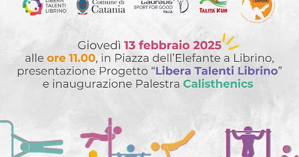 La presentazione degli obiettivi raggiunti e perseguiti da Libera Talenti Librino si terrà giovedì 13 febbraio alle ore 11 nella Piazza dell’Elefante che, proprio grazie al progetto, è stata rivoluzionata con una Palestra Calisthenics (spazio attrezzato per l'allenamento a corpo libero, basato su esercizi che sfruttano il peso del proprio corpo per sviluppare forza, resistenza ed equilibrio, dotato di sbarre per trazioni, parallele, anelli e spalliere), rendendola più funzionale, movimentata e viva.