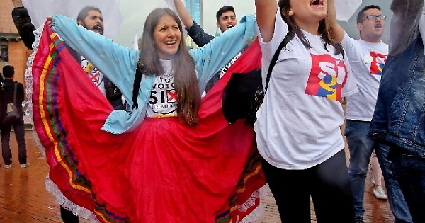 BOGOTA', 2 OTT - Colombiani al voto oggi sullo storico accordo di pace che ha messo fine a 50 anni di guerra tra i ribelli marxisti delle Farc e i vari governi di Bogotà. Il Sì sembra favorito in tutti i sondaggi, ma l'esecutivo non vuole correre rischi, tanto che nella campagna elettorale, in cui ha impegnato massicce risorse per una campagna televisiva e radiofonica, ha anche chiesto aiuto a celebrità come Bono degli U2 e l'ex Beatle Ringo Starr. Molti criticano l'accordo perché non prevede il carcere per i ribelli: un insulto, dicono, per i 220.000 morti nel conflitto e degli 8 milioni di colombiani che hanno dovuto lasciare le proprie case e i propri villaggi a causa delle violenze. Il fronte del No è capeggiato dal potente ex presidente Alvaro Uribe, che accusa il governo di aver voluto blandire le Farc e di aver creato un precedente pericoloso di impunità. Perché il referendum sia valido, almeno il 13% degli elettori (ovvero 4,5 milioni) devono aver votato.