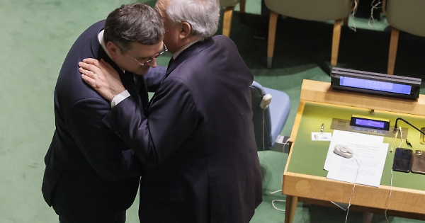 ROMA, 23 FEB - "La Russia conduce una guerra anche cercando di spaventare gli altri": lo ha detto a New York il ministro degli Esteri Antonio Tajani alla stampa italiana commentando la decisione di Vladimir Putin di revocare un decreto che in parte sosteneva la sovranità della Moldavia nell'ambito delle politiche sul futuro della Transnistria. "In Transnistria - ha detto - ci sono reparti militari russi. Ho incontrato il ministro degli Esteri della Moldavia, che è stato a Bruxelles a parlare al Consiglio europeo degli Affari esteri, probabilmente è una reazione". "A Dmytro Kuleba ho ribadito l'impegno per l'Ucraina": ha aggiunto il ministro commentando l'abbraccio che ha scambiato col capo della diplomazia ucraina dopo il suo intervento all'assemblea generale dell'Onu a favore della risoluzione per Kiev.