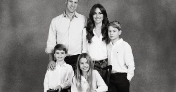 Il principe e la principessa del Galles, William e Kate, hanno pubblicato una fotografia natalizia della loro famiglia. Attorno alla principessa Charlotte seduta su una sedia, indossano camicie bianche, ci sono l'erede al trono la moglie Catherine, che come la figlia indossa una camicia bianca, e poi George, 10 anni, e Louis, 5, entrambi in sono in pantaloni neri.