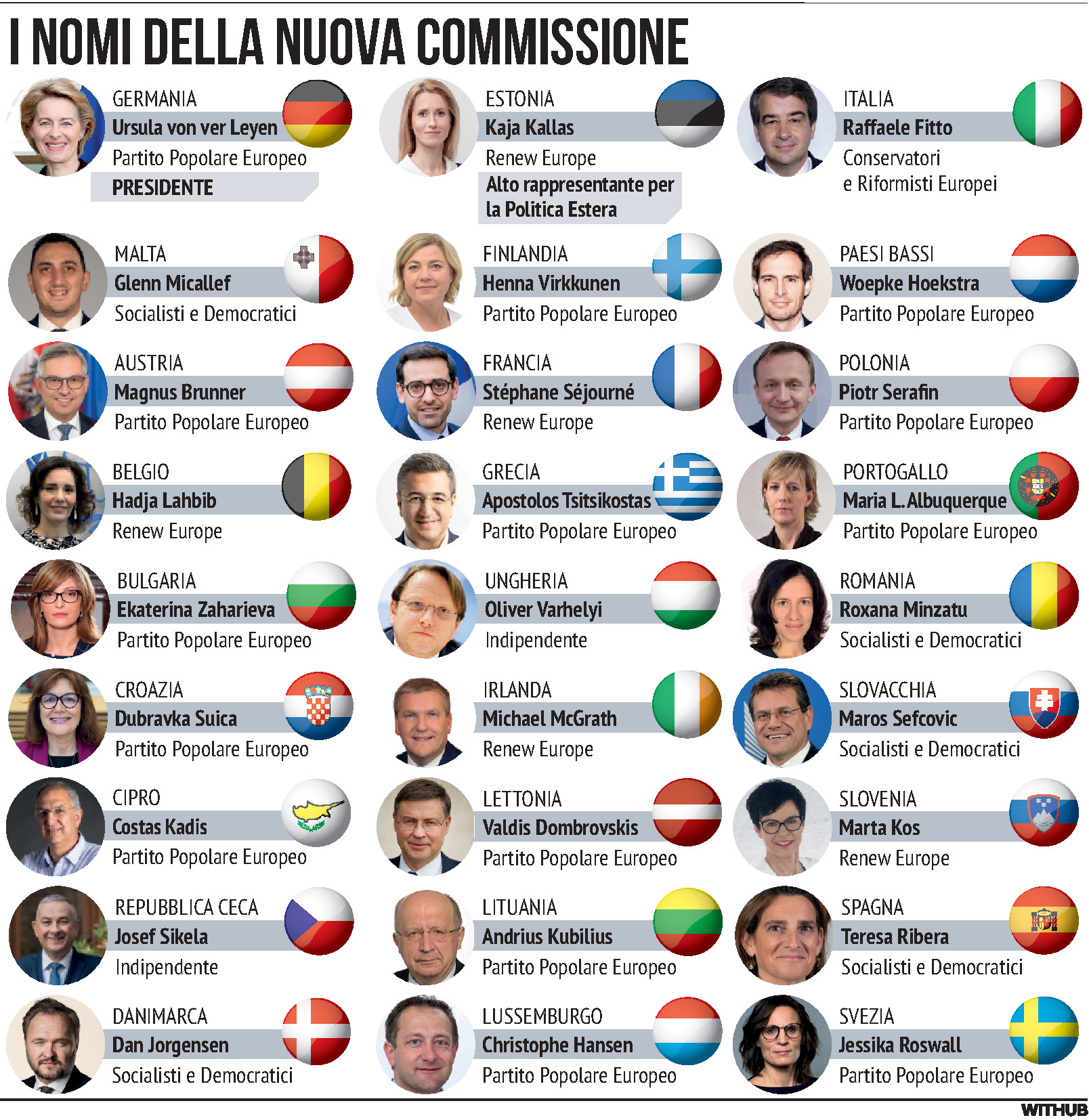 Ue, Ursula Von der Leyen presenta la sua nuova squadra: c'è Raffaele Fitto. Tutti i nomi e i ruoli