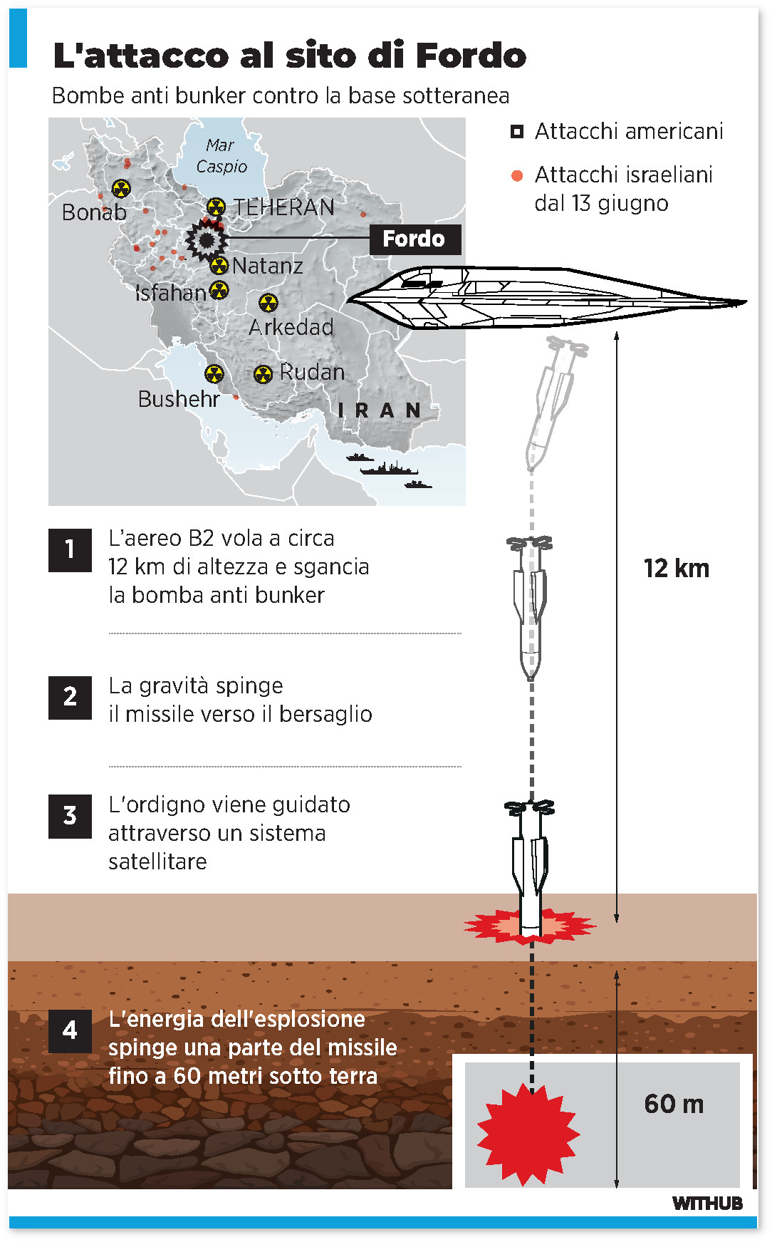 Intanto Trump ribadiva che Teheran non avrà mai «né l'arricchimento dell’uranio né l’arma nucleare» ma sgomberava il campo dall’ipotesi evocata su Truth di un cambio di regime «che porterebbe il caos» e profetizzava per l’Iran un futuro da «grande nazione commerciale, ricca di petrolio».