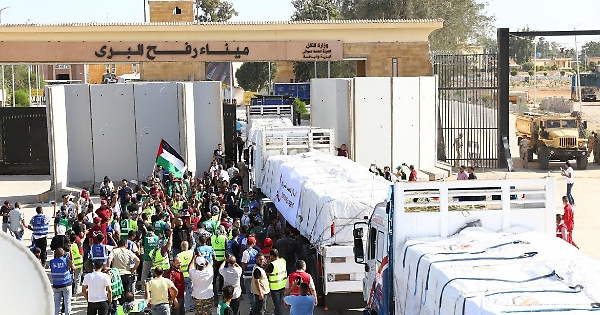 Questi i dettagli del convoglio denominato "Zad al Azza" (dall’Egitto a Gaza) composto da 100 camion che trasportano oltre 1.200 tonnellate di cibo, tra cui 840 tonnellate di farina e 450 tonnellate di generi alimentari vari, sono diretti nella Striscia di Gaza meridionale attraverso il valico di Kerem Shalom, «nell’ambito degli sforzi dell’Egitto per fornire aiuti alimentari alla popolazione della Striscia di Gaza», precisa la Mezzaluna Rossa egiziana sui suoi profili social.