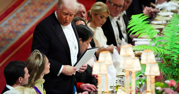 Sono 160 gli invitati al sontuoso banchetto di Stato offerto al castello di Windsor, fra i presenti una parata di miliardari e celebrità di entrambi i Paesi: inclusi l'ultranovantenne squalo dell’editoria Rupert Murdoch, il boss di Apple, Tim Cook, quello di Open Ai, Sam Altman, e il ceo di Nvidia, Jensen Huang. Non manca neppure l’amministratore delegato del ciclopico fondo d’investimento Blackrock, Steve Schwarzman, messo a sedere accanto al premier britannico, Keir Starmer, assieme a Jeanette Rubio, moglie del segretario di Stato. Segnalata inoltre la presenza di Nick Faldo, leggenda britannica del golf, uno sport assai amato da Trump.