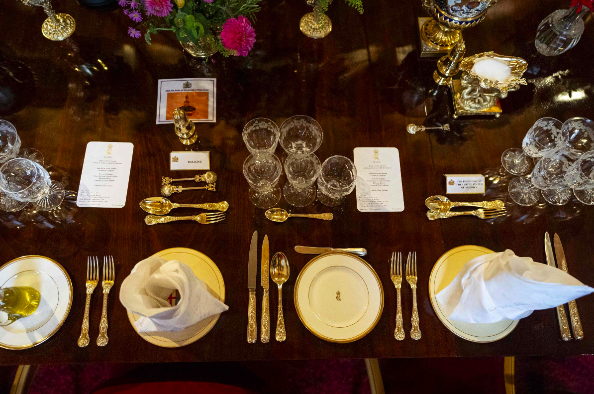 Il menu della cena di Stato a Windsor in onore della visita del presidente Usa Donald Trump nel Regno Unito ha previsto tre portate, accompagnate da una varietà di bevande.