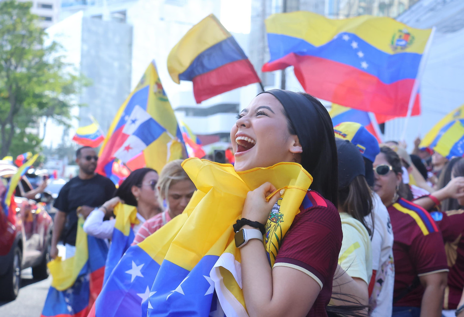 Una donna venezuelana a Panama festeggia per la cattura di Maduro