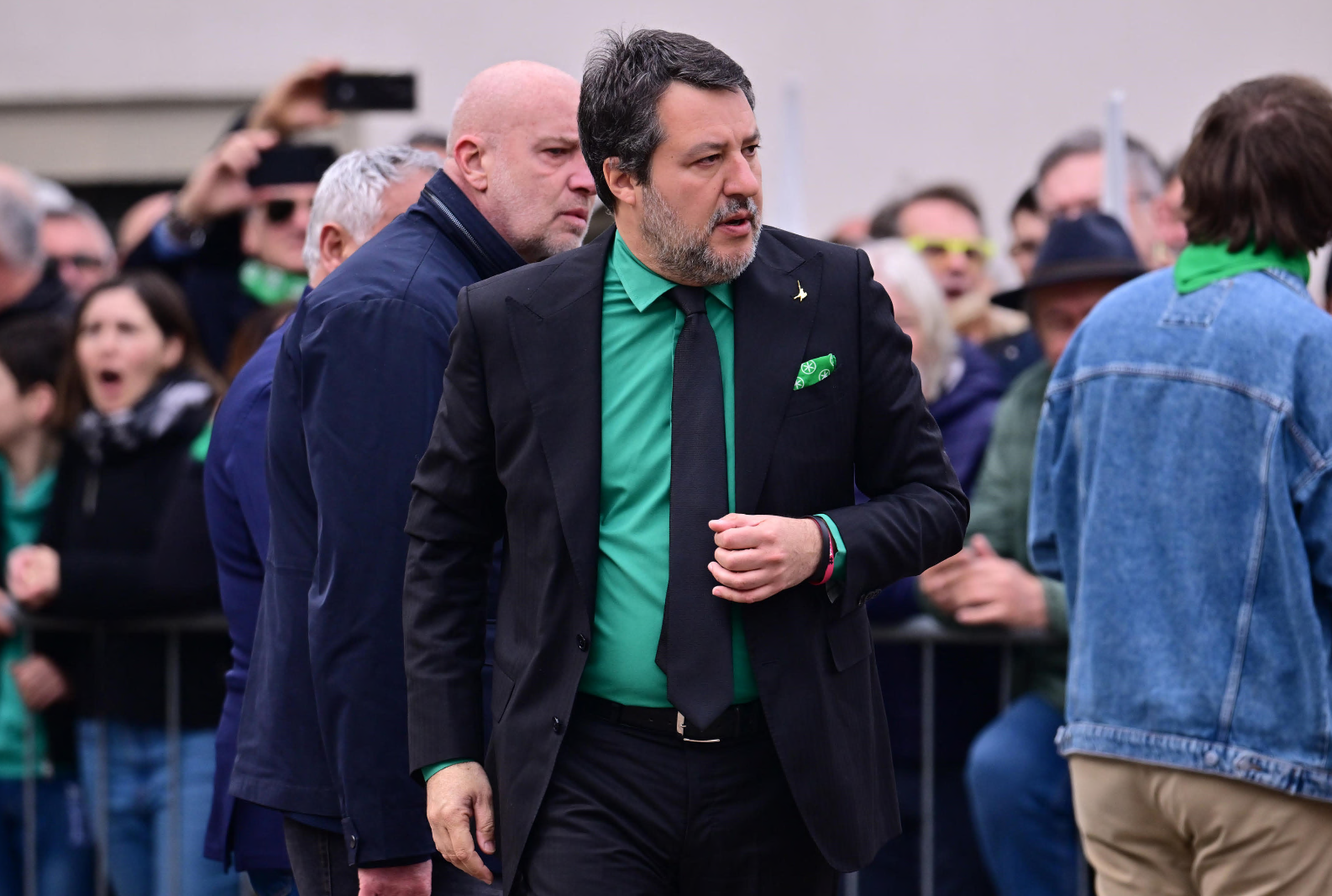Il funerale è stato preceduto da qualche coro di protesta soprattutto all'arrivo del ministro dei Trasporti e attuale leader della Lega Matteo Salvini, che si è presentato con una camicia verde.