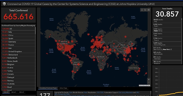 MILANO - Sono 665.164 i contagi da nuovo coronavirus nel mondo secondo il conteggio del Centro studi su Covid-19 della Johns Hopkins University. Le vittime a livello globale hanno raggiunto quota 30.852, in base all’ultimo aggiornamento, di cui un terzo si concentrano proprio in Italia (10.023). Segue la Spagna con 5.982 morti. Quanto al numero di positivi confermati gli Stati Uniti hanno il numero più alto, con 124.686 casi.